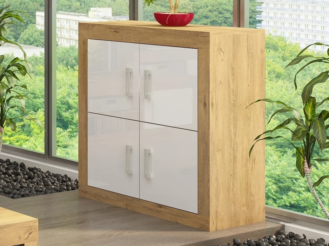 Komoda GOUDINI 4D v kombinaci dub burgundský a bílý lesk skvěle doplní moderní interiéry. Je vyrobena z lamina o tloušťce 16 mm, což zajišťuje pevnost a dlouhou životnost. Rozměry 90 × 100 × 44 cm nabídnou dostatek úložného prostoru, aniž by zahltila prostor.