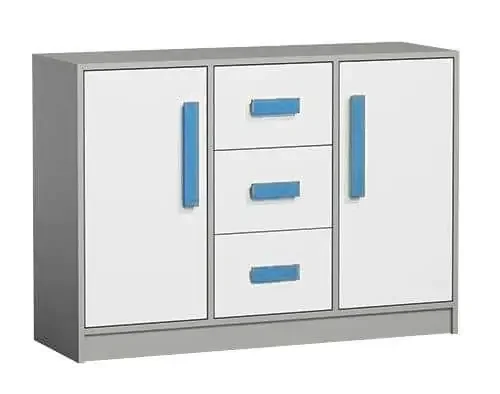Korpus je v barvě šedá antracit, dveře mají matnou bílou, a úchytky jsou modré. Sektorový nábytek GYT nabízí široký výběr modulů pro sestavení dětského či studentského pokoje, ložnice či kanceláře podle vašich představ. Dodáváme v demontovaném stavu, montáž je rychlá a jednoduchá. Snadná kombinovatelnost s dalším nábytkem a možnost sestavit pokoj na míru dělají z této komody praktický a stylový doplněk interiéru.
