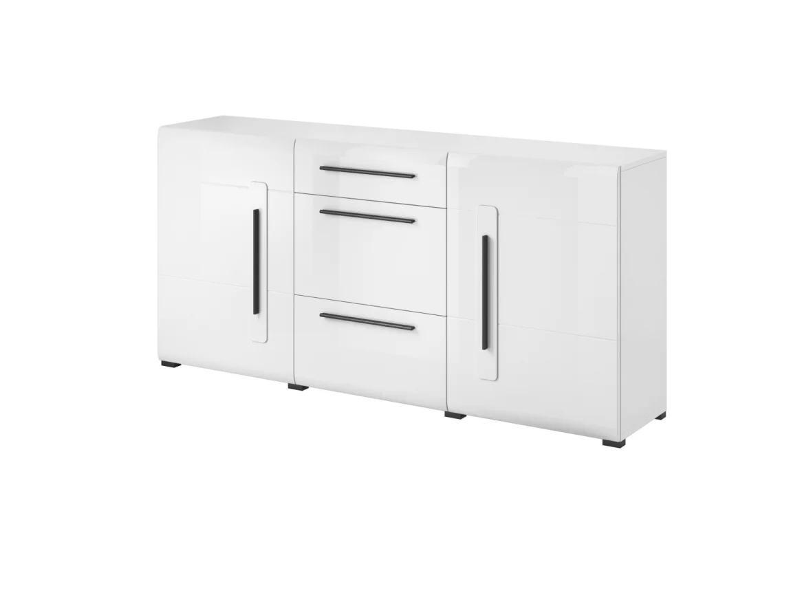 Komoda JEOLLA 2D3S Typ 1 v čisté bílé barvě s lesklým povrchem je praktickým doplňkem do každé místnosti. Rozměry 180 × 39 × 86 cm nabízejí dostatek úložného prostoru a zároveň šetří místo.