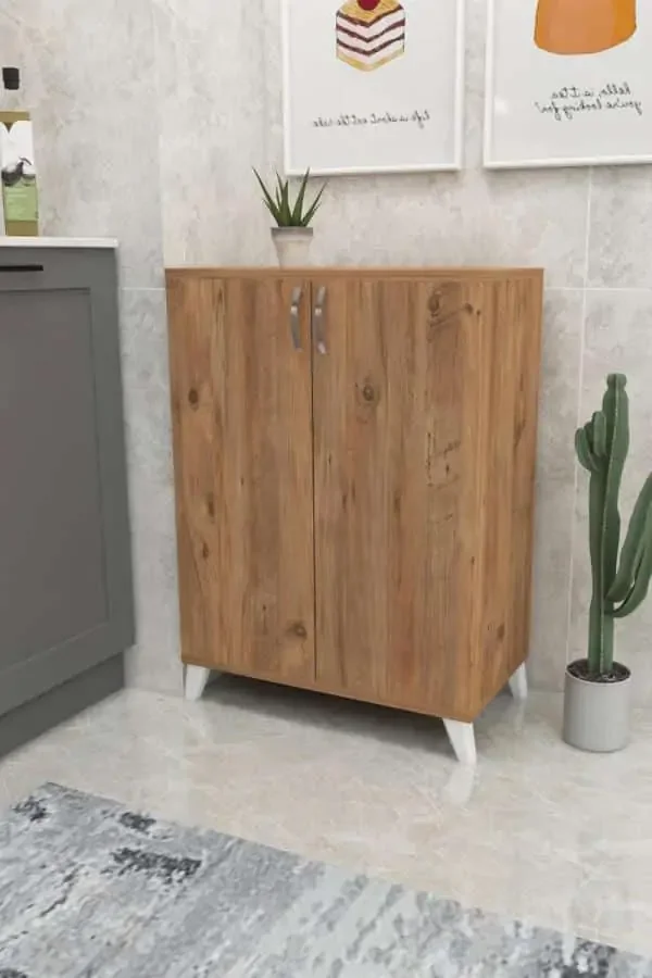 Korpus v přírodním dekoru borovice doplňují bílé nohy, čímž vzniká svěží kontrast a nadčasový vzhled. Uvnitř najdete 3 praktické police, které usnadní uskladnění věcí. Tloušťka lamina dosahuje 18 mm, což zajišťuje pevnost a stabilitu. Dodáváme v demontovaném stavu pro pohodlnou dopravu a rychlou montáž doma. Snadná údržba a univerzální styl ji činí vhodnou volbou pro obývací pokoj, ložnici i chodbu.