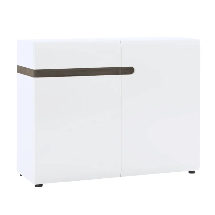 Tato moderní komoda z programu Lynatet je vhodná do obývacího pokoje, ložnice i předsíně. Dvoudveřová část obsahuje jednu zásuvku a nese bílé provedení s tmavým dekorem dub Sonoma, který dodává stylový kontrast.