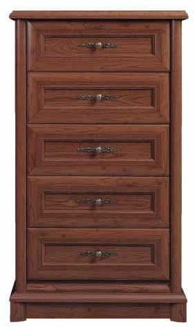 Elegantní komoda v kaštanové barvě přináší nadčasový vzhled a praktický úložný prostor se pěti zásuvkami. Rozměry 108,5 cm výška, 61,5 cm šířka a 45 cm hloubka ukazují na štíhlé provedení, které se hodí i do menších místností.