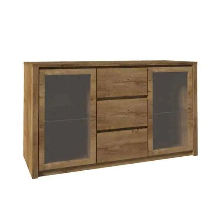 Komoda Montana K2D je praktické řešení pro každou místnost s dvěma prosklenými dvířky a třemi zásuvkami, které poskytují dostatek úložného prostoru. Je vyrobená z laminované dřevotřískové desky v tmavém dekoru dub Lefkas a doplněná odolnými ABS hranami pro dlouhou životnost. Tento kus patří do moderního nábytkového systému Montana, díky němuž lze jednotlivé prvky snadno kombinovat podle vašich představ v obývacím pokoji, jídelně či ložnici. Dodáváno v demontu pro snadnou montáž. Díky nadčasovému dekoru a neutrálnímu provedení se jednoduše sladí s různými doplňky a poskytuje uklizený, čistý vzhled interiéru.
