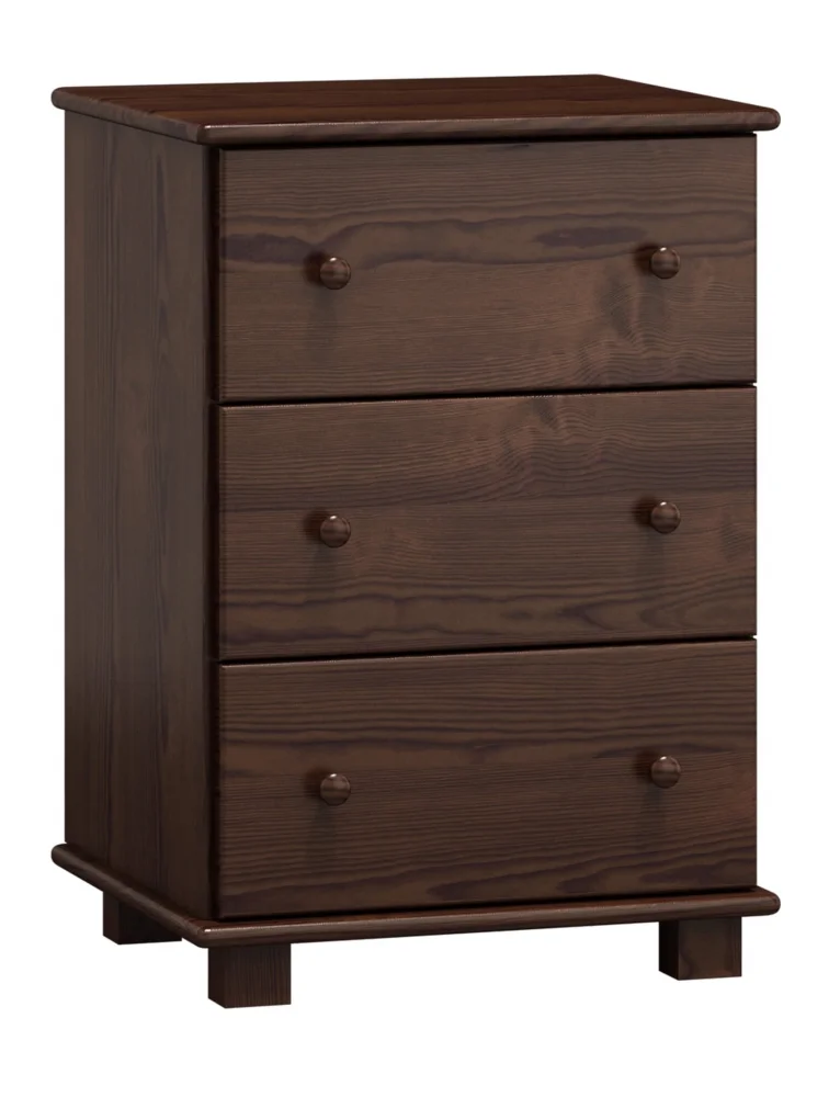 Elegantní komoda NEFTYS 14 je vyrobená z masivní borovice a doplněna povrchovou úpravou v odstínu ořech. Disponuje třemi prostornými šuplíky, které efektivně uskladní vaše věci. Rozměry jsou 78 cm na výšku, 55 cm na šířku a 47 cm do hloubky, takže se hodí do ložnic i předsíní. Dodává se v demontovaném stavu, montáž je rychlá a jednoduchá, a díky pevné konstrukci vám bude dlouho sloužit.