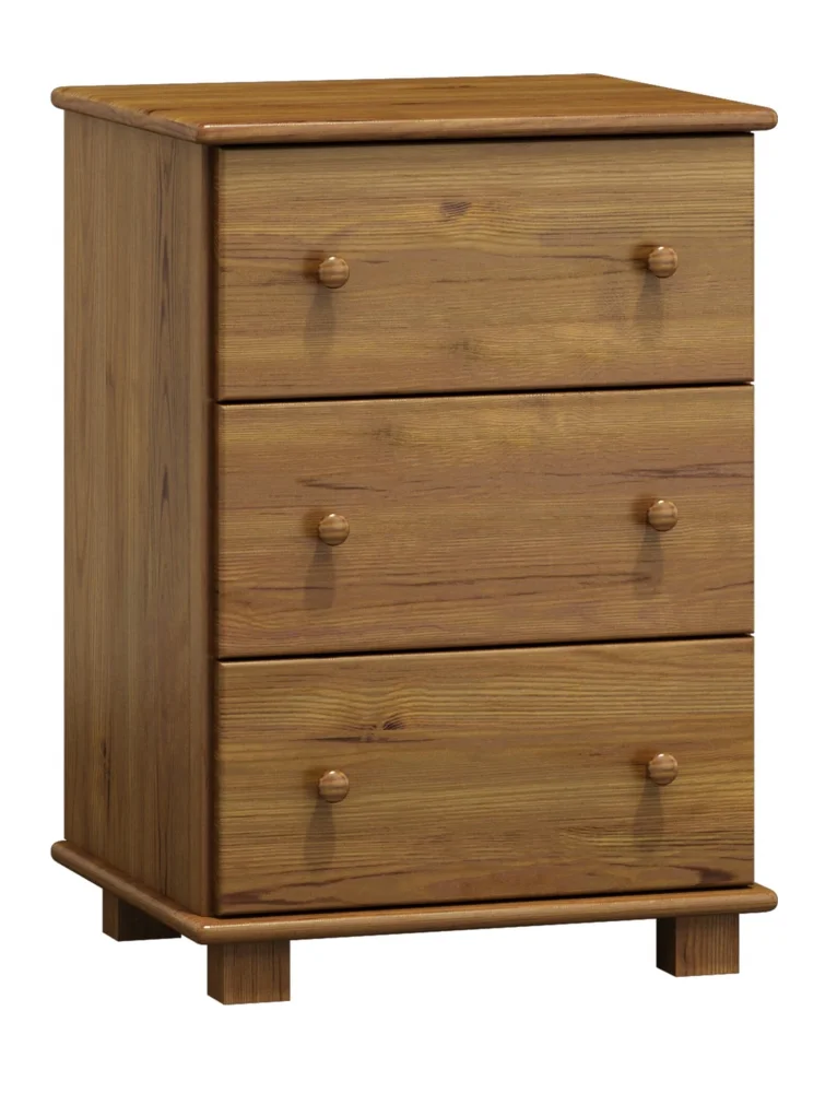 Komoda NEFTYS 14 se třemi šuplíky poskytuje praktické úložné řešení do každé místnosti. Je vyrobena z masivního dřeva borovice a doplněna povrchovou úpravou v odstínu dub, která zdůrazňuje kresbu dřeva.