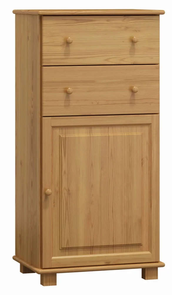 Kombinovaná komoda s dvířky a dvěma zásuvkami nabízí praktické úložné řešení pro každý prostor. Základem je masivní borovice, která zaručuje pevnost a dlouhou životnost. Moření v odstínu olše dodává teplý a nadčasový vzhled, který se hodí k různým stylům interiéru.