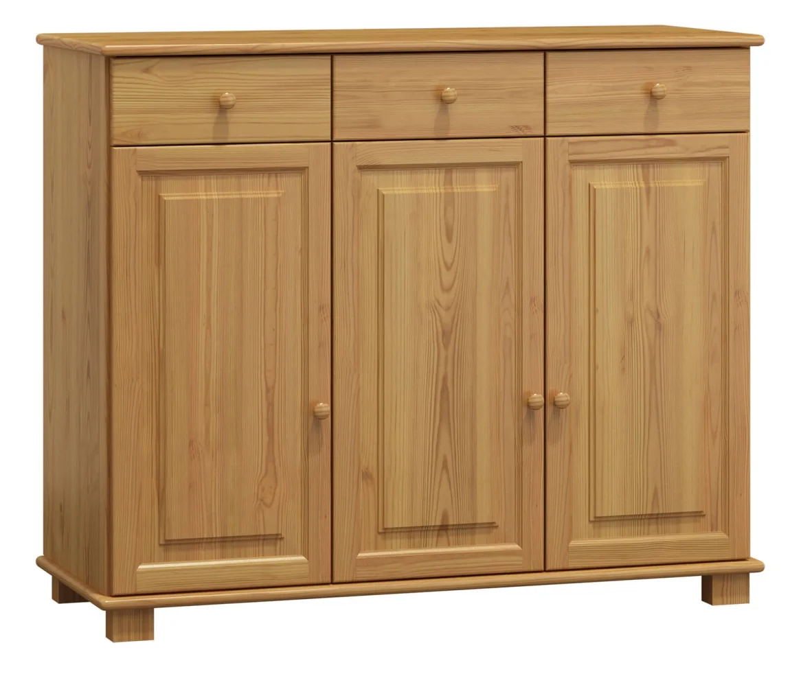 Kombinovaná komoda nabízí praktické úložné řešení se třemi šuplíky a třemi dvířky, které usnadní organizaci věcí. Je vyrobena z masivu borovice a ošetřena odstínem olše, čímž získává přírodní vzhled a dlouhou životnost. Rozměry: 85 cm výšky, 118 cm šířky a 42 cm hloubky. Je dodávána v demontovaném stavu. Díky neutrálnímu tónu se hodí do různých interiérů a poskytuje stabilní a pevný úložný prostor pro každodenní použití. Montáž zvládnete během chvíle a odolný materiál zajišťuje dlouhou životnost.
