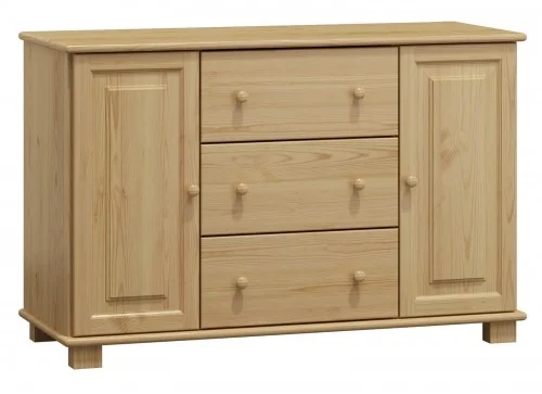 Konstrukce z masivní borovice zajišťuje pevnost, dlouhou životnost a příjemný přírodní vzhled. Komoda nabízí dvě dvířka a tři šuplíky, které poskytnou praktický úložný prostor pro oblečení, dokumenty i drobnosti. Rozměry: výška 78 cm, šířka 118 cm a hloubka 42 cm, takže skvěle doplní většinu ložnic i obývacích pokojů. Dodáváme ji v demontu, což usnadňuje dopravu a samotnou montáž dle vašich potřeb. Díky nadčasovému vzhledu a kresbě dřeva se hodí do různých interiérových stylů a časem může získat hezkou patinu.