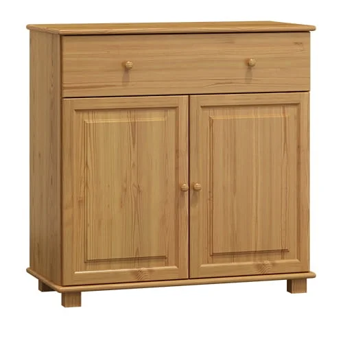 Poctivá komoda s dvířky a jedním šuplíkem je vyrobena z masivní borovice, která zaručuje dlouhou životnost a přírodní vzhled. Povrch je ošetřen mořením v odstínu olše, což vytváří teplý a nadčasový tón do ložnice i obývacího pokoje. Rozměry 100 x 100 x 42 cm (výška × šířka × hloubka) nabízejí dostatek úložného prostoru pro vaše věci. Dodáváno v demontu.