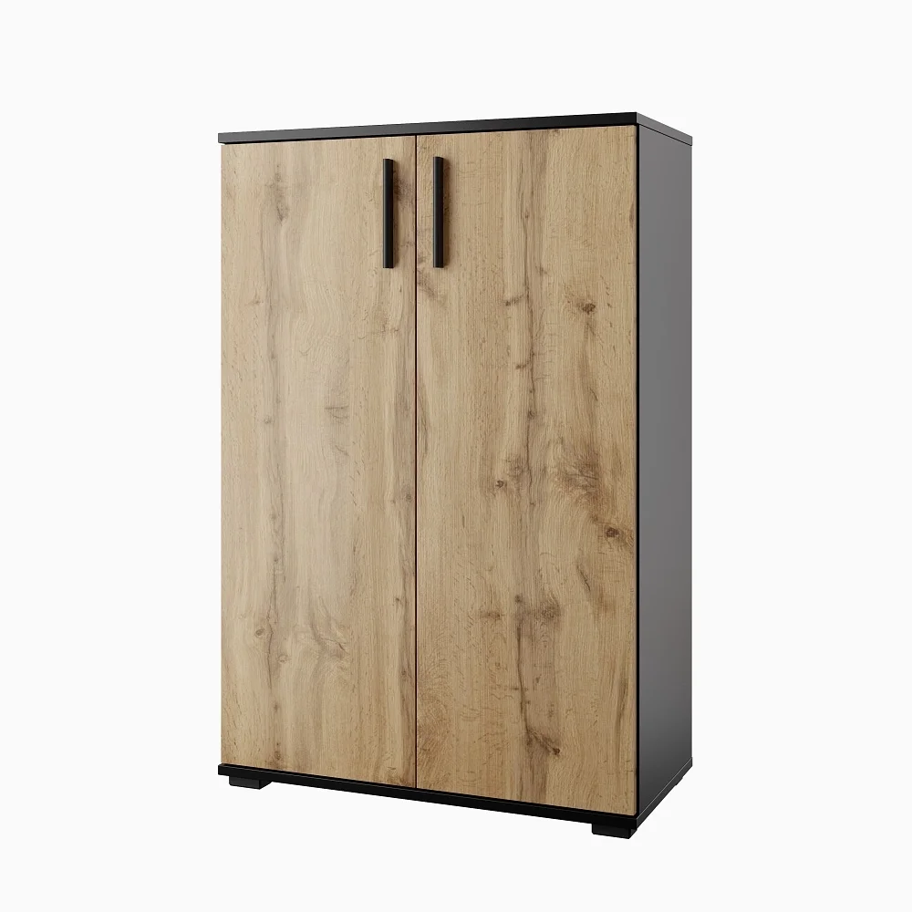 Materiál tvoří lamino o tloušťce 16 mm, který zaručuje pevnou a dlouhotrvající konstrukci. Plastový úchyt o délce 160 mm dodává moderní vzhled a pohodlné ovládání. Dodání probíhá v demontovaném stavu, což usnadňuje dopravu a montáž. Vhodná volba pro organizaci knih, dokumentů a každodenních drobností, díky policovému uspořádání rychle dosáhnete přehledného a útulného interiéru.