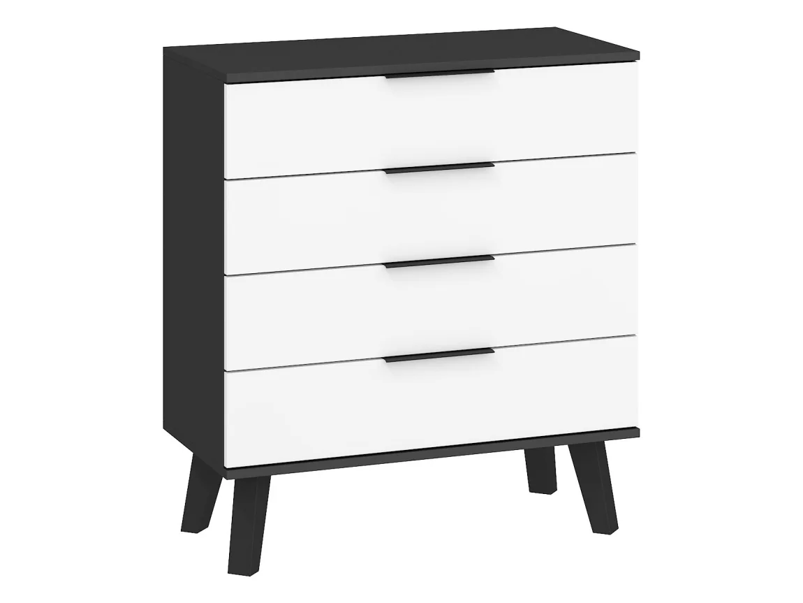 Komoda OSMAK 4S v provedení černý/bílý lesk kombinuje elegantní vzhled s praktickým úložným prostorem. Rozměry 80 cm na šířku, 89 cm na výšku a 40 cm do hloubky; výška nožek je 18 cm, což usnadňuje úklid pod nábytkem.