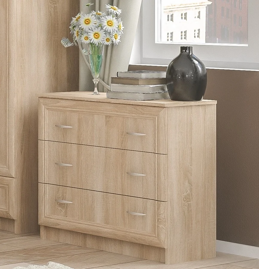 Praktická komoda Plantago ve stylu dub sonoma nabízí tři šuplíky pro efektivní uspořádání věcí. Rozměry 80,5 x 77 x 38 cm (š x v x h) umožňují její pohodlné umístění do obývacího pokoje i ložnice.