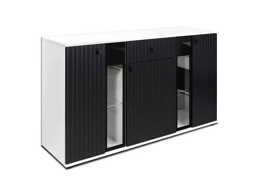 Stylová komoda SALSA v moderním duchu nabízí tři dvířka a jednu praktickou zásuvku, které skvěle doplní každou obývací zónu. Její černo-bílé provedení vytváří nadčasový kontrast a hodí se do různých interiérů.