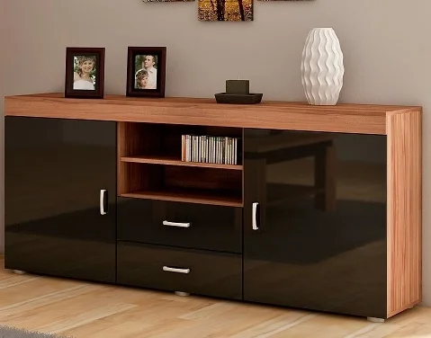 Komoda SIWANI – švestka wallis / černý lesk, 5 let záruka Komody