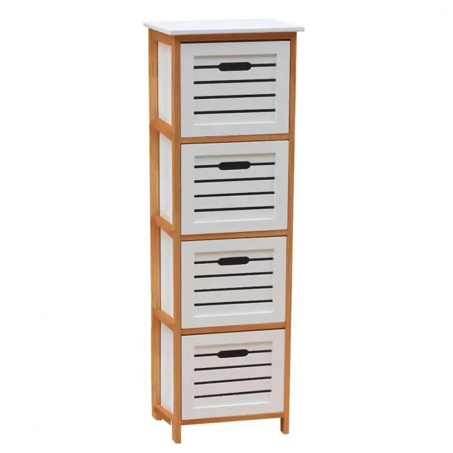 Komoda TALAS spojuje MDF s masivním borovicovým dřevem a díky kvalitní kombinaci MDF a masivu poskytuje odolný úložný systém. Využijete čtyři prostorné šuplíky pro přehledné ukládání věcí. Barevné provedení kombinuje bílou s přírodním odstínem dřeva. Dodávána v demontu, což usnadňuje přepravu i montáž. Skvěle doplní interiér ložnice či předsíně a díky světlému vzhledu působí vzdušně a lehce.