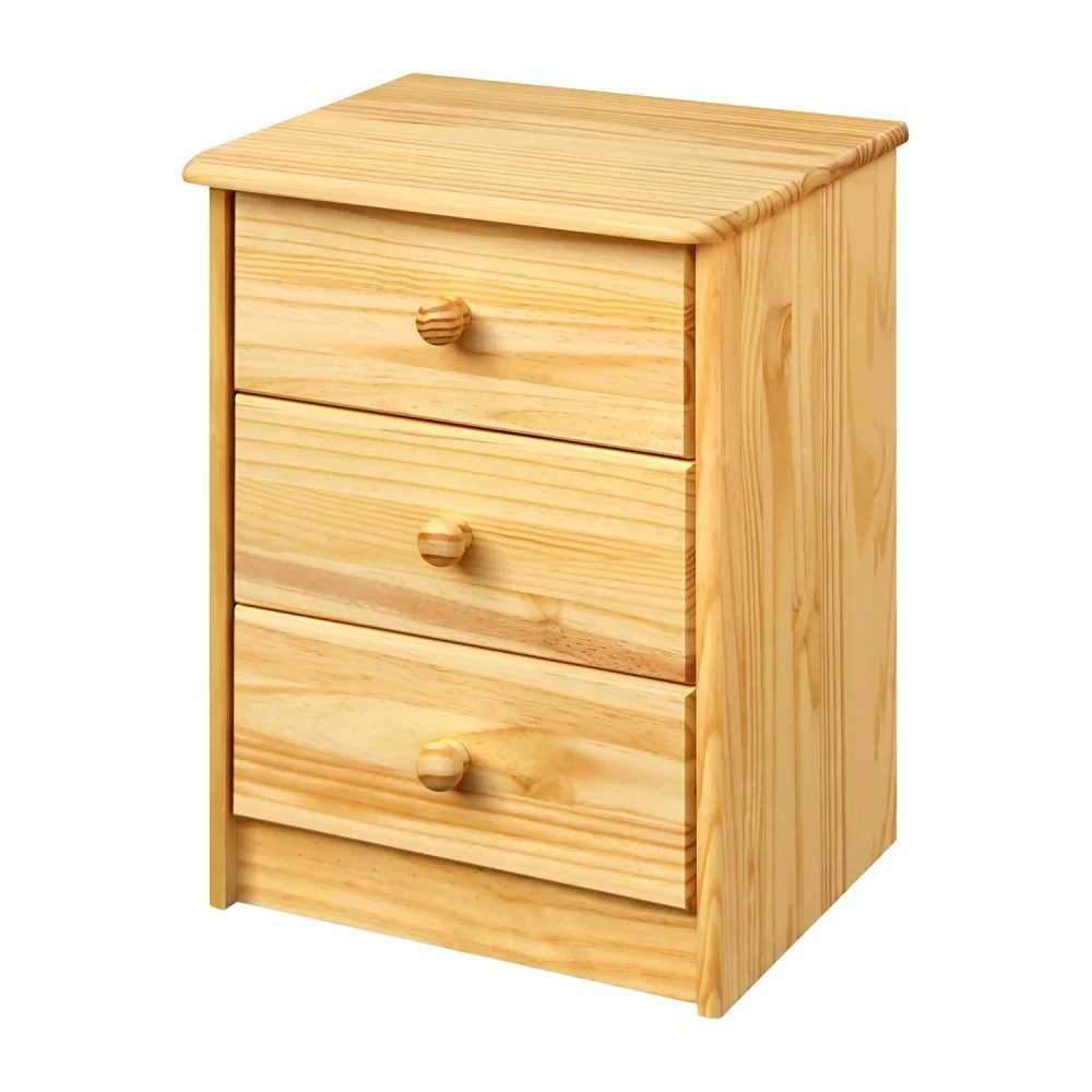 Praktická komoda se 3 zásuvkami je vyrobena z masivu borovice a má lakovaný povrch, který zajišťuje snadnou údržbu a dlouhou životnost. Rozměry (š x h x v): 43 × 35 × 57 cm poskytují dostatek úložného prostoru v kompaktním provedení.