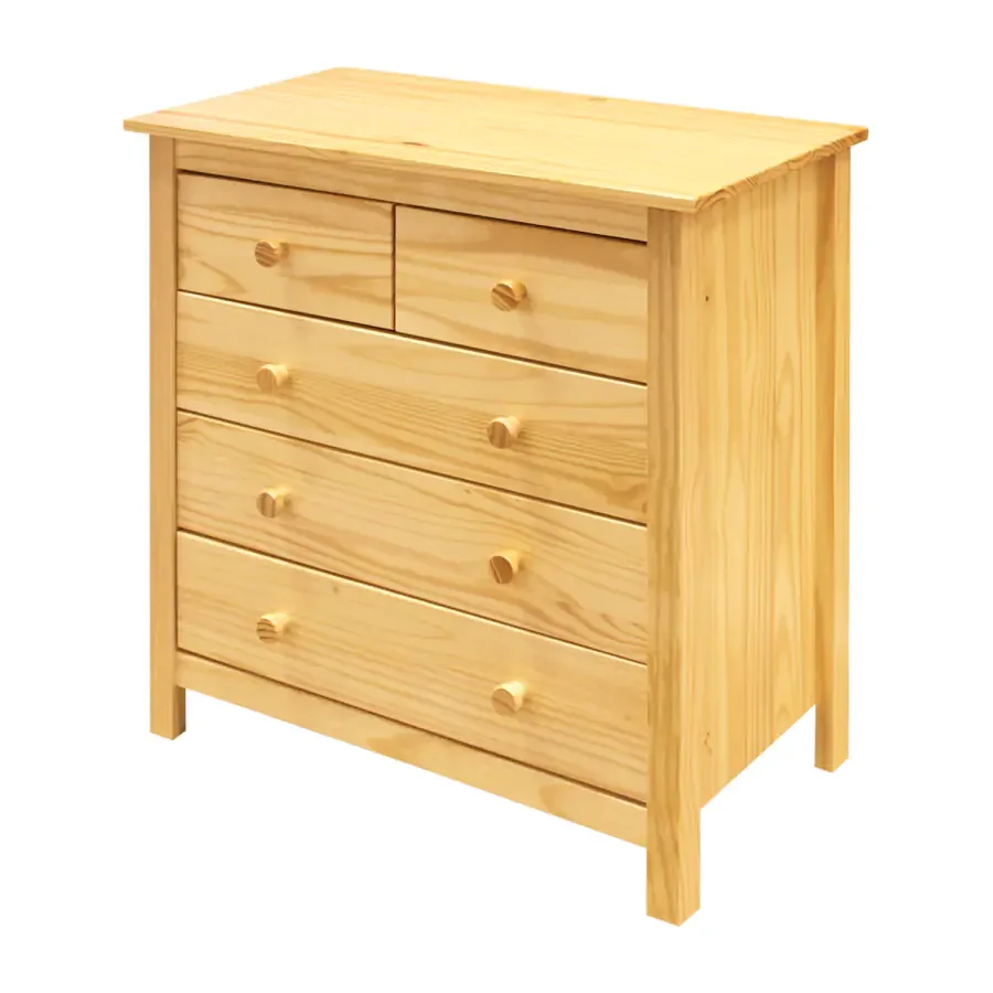 Tuto komodu vyrobenou z borovicového masivu oceníte pro její praktické úložné prostory. Disponuje dvěma menšími a třemi většími zásuvkami s kovovými pojezdy pro plynulý chod. Povrch je ošetřen dekoračním voskem, který zdůrazní kresbu dřeva a zároveň chrání povrch proti vodě a nečistotám díky vodoodpudivé vrstvě. Její nadčasový vzhled se hodí do ložnice i předsíně a díky přírodním materiálům působí teplým, útulným dojmem.