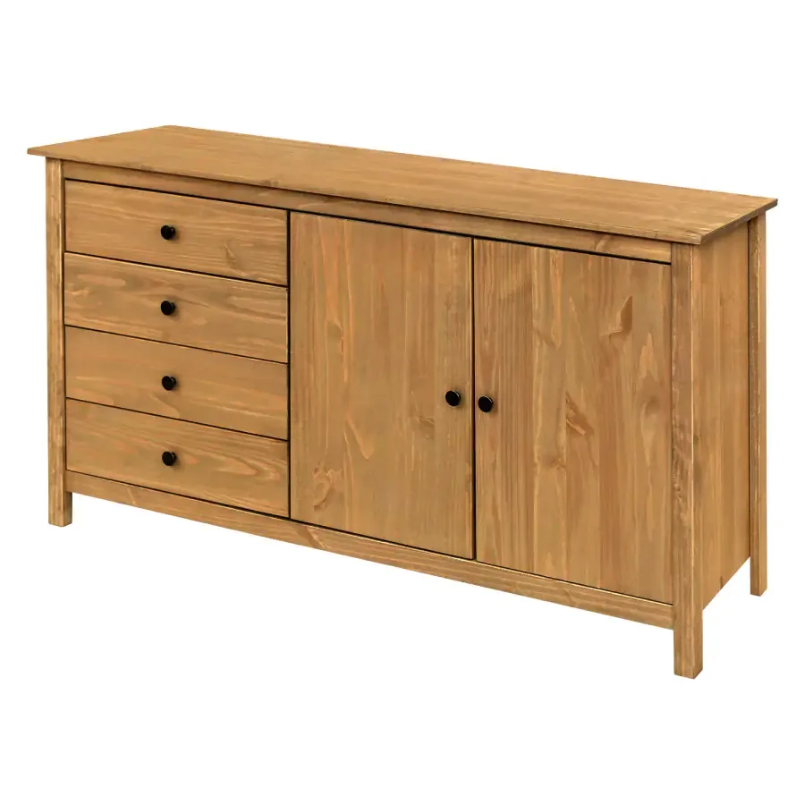 Komoda TORINO vosk s 2 dveřmi a 4 zásuvkami představuje praktické úložné řešení pro ložnici, které uschová drobnosti, prádlo i deky. Teplá medová barva vosku dodává nábytku moderní vzhled, který dobře doplní ostatní prvky ze série TORINO. Na levé straně najdete 4 zásuvky, zatímco pravá strana je uzavřena dvířky a skrývá polici pro větší věci. Díky nízkému provedení nezabírá zbytečně prostor, takže je ideální do menších místností a lze ji postavit samostatně či v kombinaci s dalšími kousky z řady TORINO vosk. Navíc vám umožní vystavit oblíbené fotografie či dekorace, čímž oživí útulný vzhled vaší ložnice.