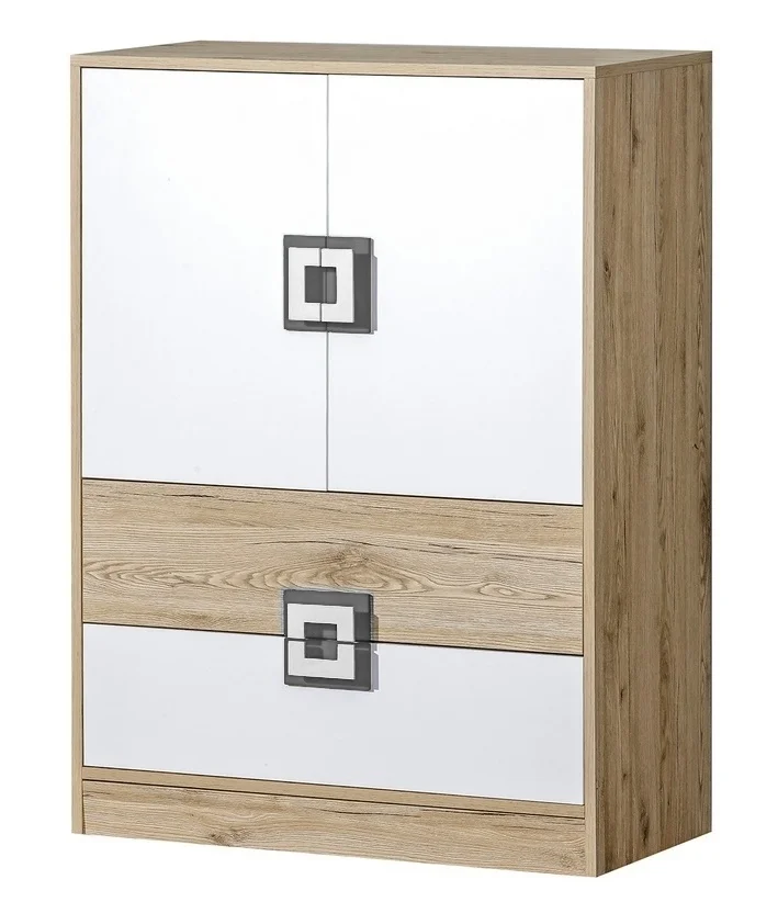 Komoda UWARA 2D2S spojuje světlý dub jasný s bílým matným povrchem a akcenty v barvě popel, čímž zaujme mladší generaci. Je vyrobena z kvalitní LTD desky s ABS hranou pro pevný a dlouhodobý vzhled.