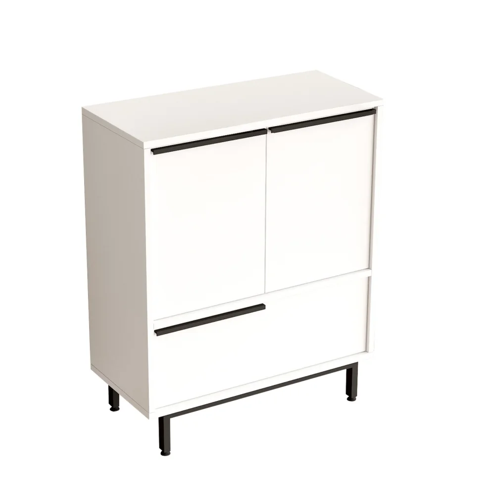 Proměňte svůj prostor komodou Velvon 2, která vyniká čistým bílým zpracováním a praktickým designem. Víceúčelová skříň nabízí dostatek místa pro knihy, oblečení i drobnosti a díky svému modernímu vzhledu se hodí do každého pokoje. Vyrobena z odolné DTD desky s melaminovým povrchem zaručuje dlouhou životnost a snadnou údržbu. Kovové nohy zajistí stabilitu a styl zároveň a podpoří čistý, vzdušný dojem v místnosti. Prostor uvnitř je rozdělený policemi, takže pořádek zvládnete během chvíle a všechno budete mít po ruce. Díky neutrální bílé barvě se skříň snadno sladí s jakýmkoli dekorem a navíc podtrhne svěží dojem vašeho domova.