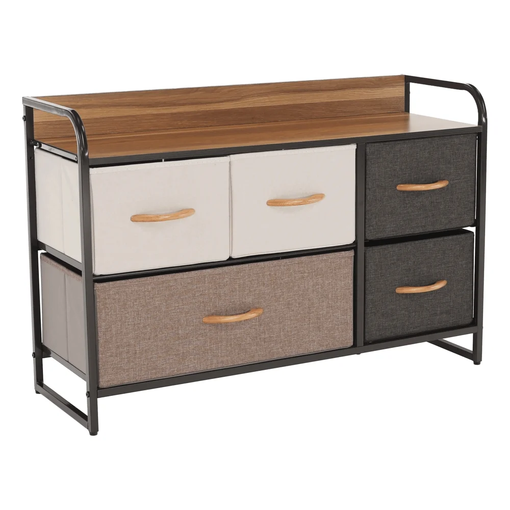 Chcete do domova vnést nový šmrnc a zároveň praktické řešení úložného prostoru? Komoda ZBYŠEK nabízí stylový, moderní vzhled a vnitřní prostor s pěti šuplíky. Kovová konstrukce v černé barvě doplňuje látkové šuplíky v kombinaci béžové, světlehnědé a tmavohnědé, čímž vzniká atraktivní vrstvení barev.