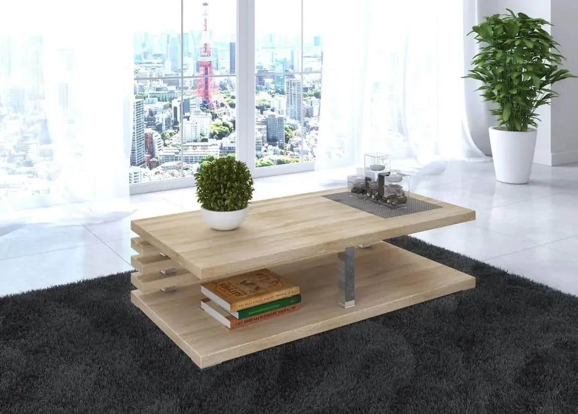 Stylový konferenční stolek ARGANIL dodá vašemu interiéru moderní šmrnc a stane se výrazným prvkem v obýváku, kanceláři i hale. Konstrukčně je zpracován deskou LTD v odstínu dub sonoma, která poskytuje teplý a nadčasový vzhled. Produkt je dodáván v demontovaném stavu, což usnadňuje přepravu a montáž doma. Pro jednotný dojem doplňte pod něj stylový koberec a doplňky, které podtrhnou jeho linie. Díky čistým liniím a praktickým rozměrům nabídne dostatek odkládací plochy na noviny, ovladače a dekorace.