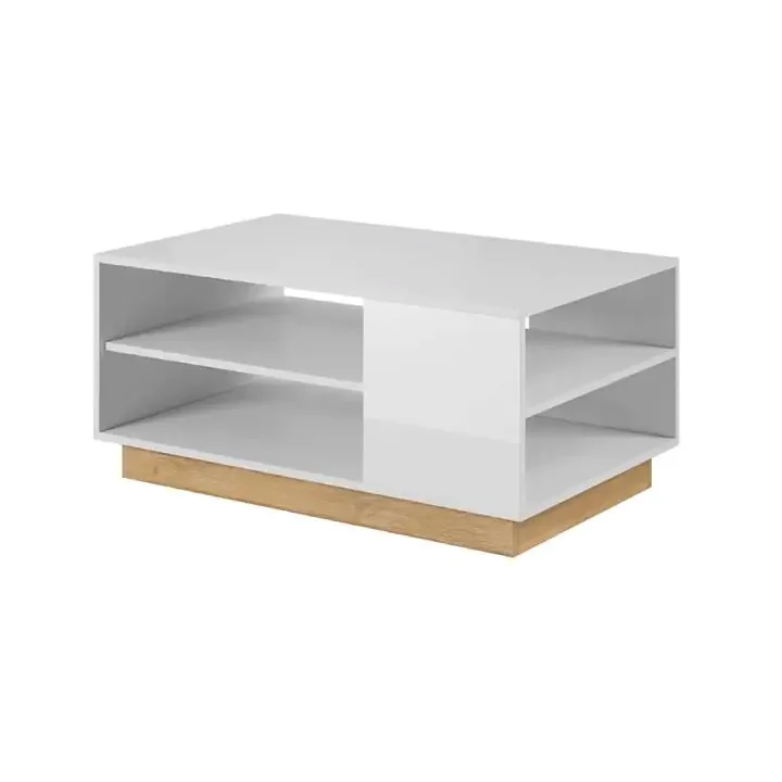 Konferenční stolek CITY v nadčasovém designu se hodí do každého interiéru – do obývacího pokoje i do kanceláře. Je vyrobený z laminované dřevotřísky s ABS hranami v dekoru bílé, dub grandson a bílého lesku. Součástí stolku je praktická police. Tloušťka materiálu činí 16 mm. Dodáváno v demontu. Využijete jej pro uspořádání časopisů, ovladačů a drobností a díky neutrálnímu provedení se snadno sladí s ostatními prvky interiéru. Lesklé provedení a čisté linie dodávají prostoru svěží a moderní vzhled.