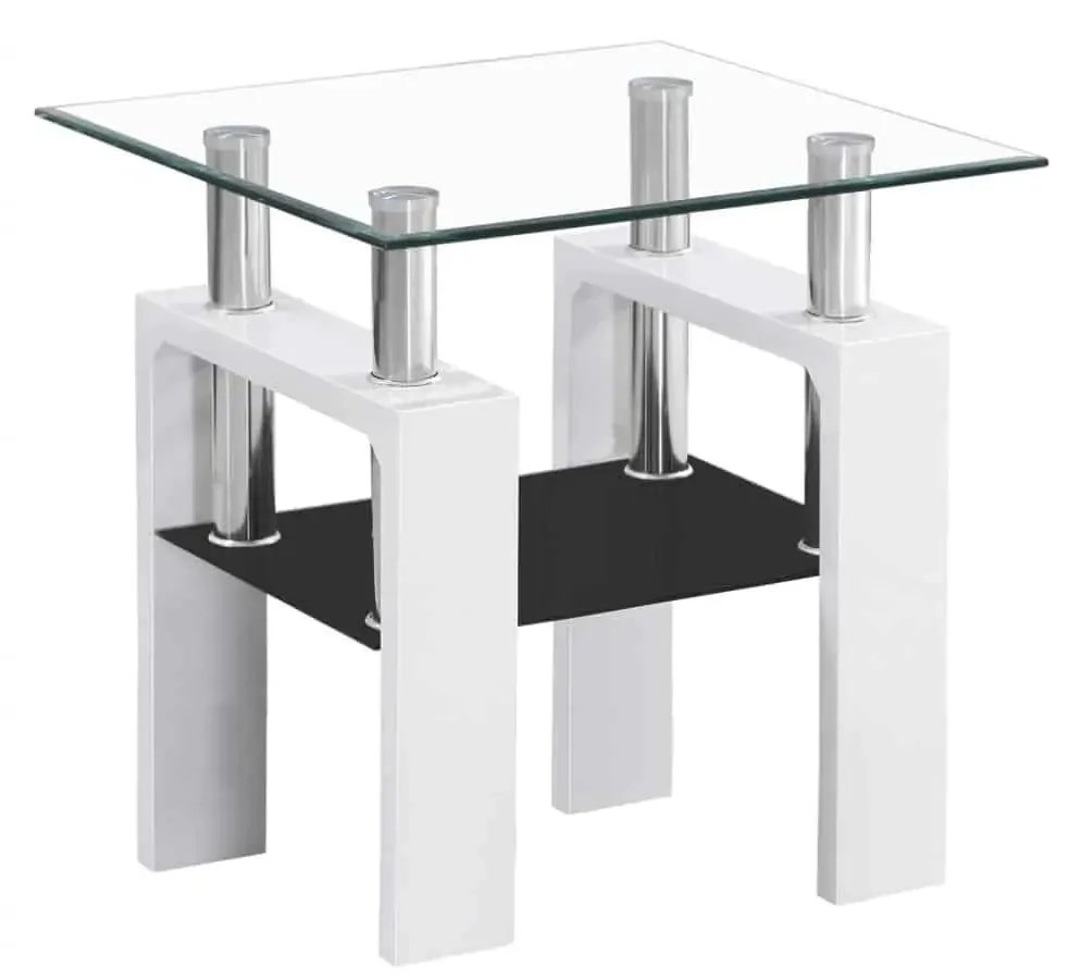 Stylový konferenční stolek s moderním výrazem z kolekce LISA dodá vašemu interiéru svěží a nadčasový vzhled. Lakované MDF zaručuje pevnou konstrukci, horní deska je z čirého tvrzeného skla a spodní polička z černého skla, které spolu tvoří elegantní kontrast. Kovové prvky zajišťují spolehlivé uchycení poličky a celá konstrukce působí bytelně. V nabídce řady LISA naleznete i další barevné varianty, takže stolek snadno sladíte s existujícím nábytkem. Doporučujeme kombinovat s dalším nábytkem ze stejné kolekce a vytvořit jednotný, stylový prostor. S kvalitními materiály je stolek odolný vůči každodennímu používání a díky snadné údržbě ho snadno udržíte v pořádku.