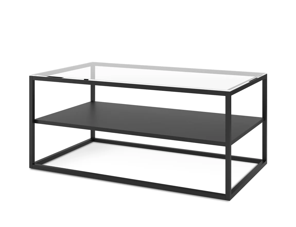 Konferenční stolek LOBOPHYLLIA se sklem a policií, černá Konferenční stolky