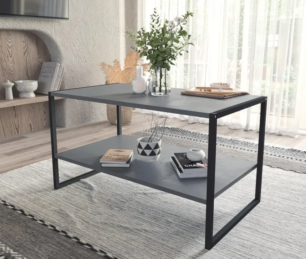 Konferenční stolek MAYER 90 spojuje kovový rám v matné černé s vrchní deskou a policí z kvalitní LTD desky v antracitové barvě. Díky svým čistým liniím a loftovému vzhledu se hodí do moderních obývacích pokojů a zároveň působí skvěle i v tradičních interiérech.