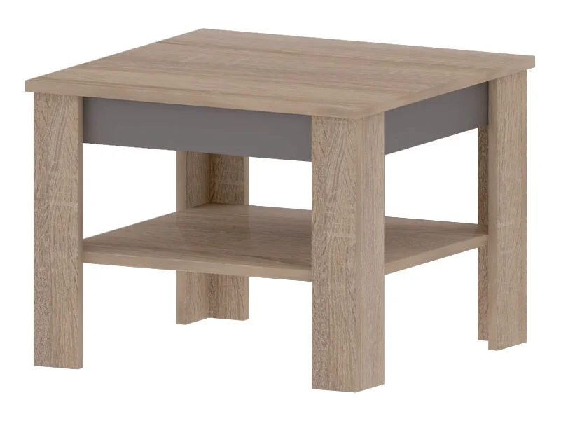 Konferenční stolek NEVIS A kombinuje světlé odstíny dubu sonoma s grafitovým akcentem pro moderní vzhled obývacího prostoru. Rozměry činí 67 × 67 × 46 cm, ideální pro odkládací prostor vedle sedačky.
