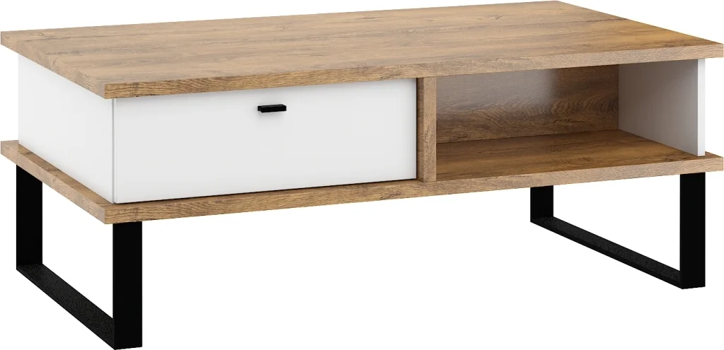 Konferenční stolek ORSOLA 2SP nabízí dva šuplíky a otevřený odkládací prostor pro pohodlné ukládání drobných věcí. Systém tichého dovírání zajišťuje tiché a plynulé zavírání zásuvek i otevřených částí. Rozměry jsou 120 × 46 × 68 cm (š/v/h) a povrch je z lamina tloušťky 16 a 25 mm s ABS hranami pro dlouhou životnost. Nohy z černého kovu měří 22 cm a úchyty jsou v černé barvě, což dodává stolku moderní vzhled. Barevné provedení kombinuje dub burgundský s bílou a snadno se sladí s různými styly interiéru. Dodáváno v demontu; v balení najdete návod a veškerý spojovací materiál pro rychlou montáž. Tento konferenční stolek je ideální volbou pro funkční a stylový úložný prostor v každé obývací zóně.