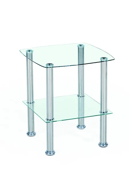Stolek SHERATAN kombinuje desku ze skla s robustní konstrukcí z nerezové oceli, což mu dodává moderní vzhled a dlouhou životnost. Rozměry 45 × 45 × 51 cm (d x š x v) zajišťují dostatek prostoru pro lampu, dekorace i noviny.