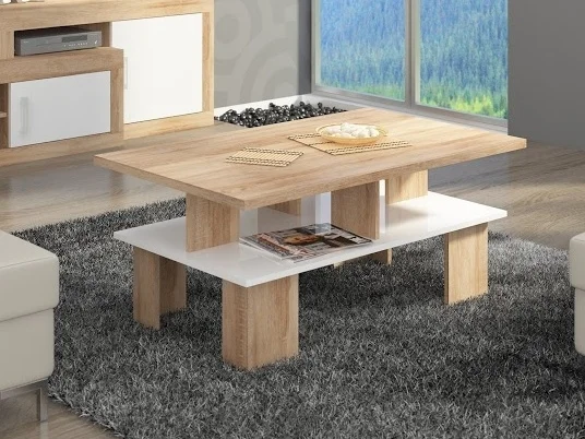 Konferenční stolek Trafalgar B spojuje moderní vzhled s praktičností do velkého obývacího prostoru. Barva kombinuje dub sonoma s lesklou bílou, díky čemu stolky působí svěže a nadčasově.
