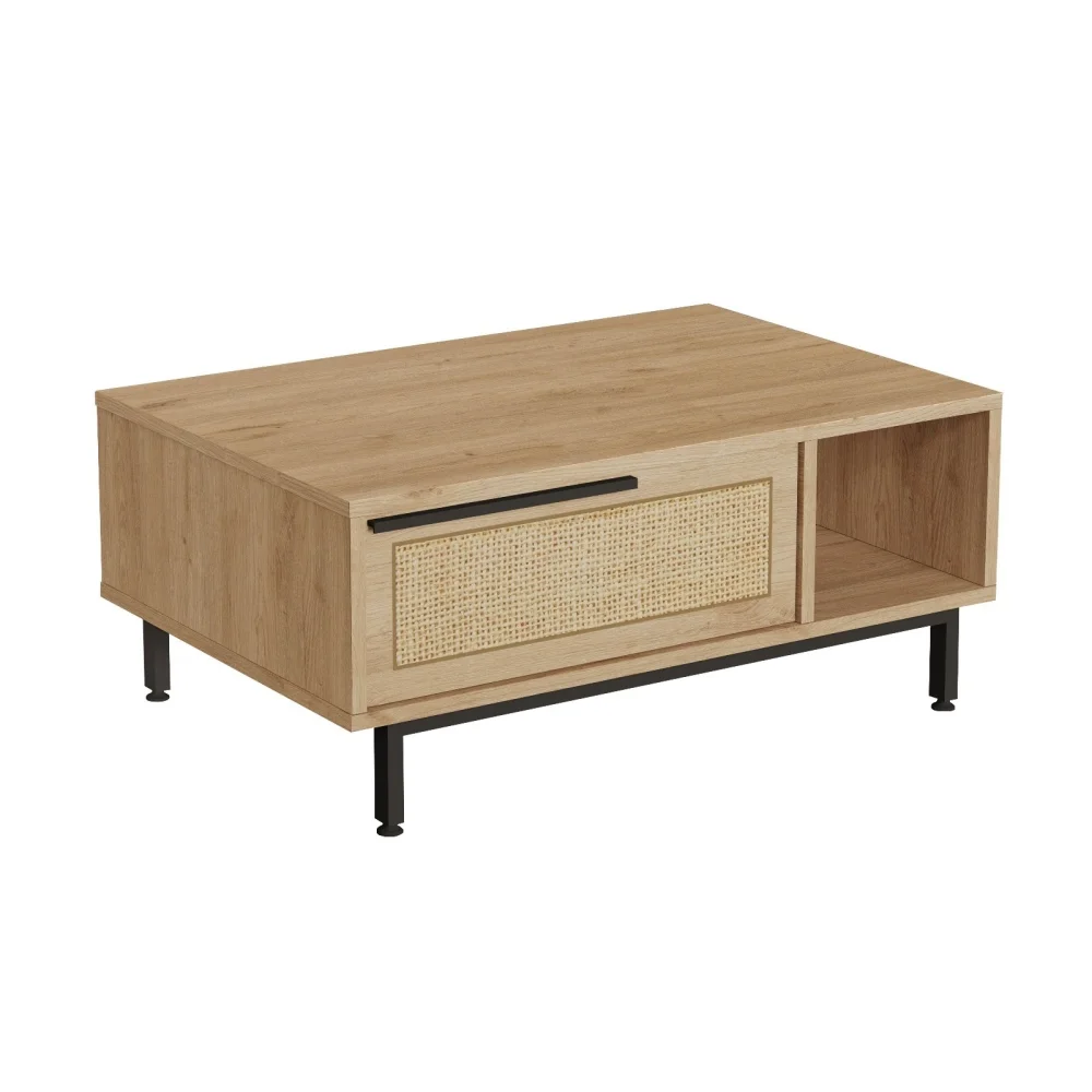 Objevte konferenční stolek Velvon, kde se spojuje teplý vzhled vlašského ořechu s přírodním detailem dubu a vzniká tak nadčasový design vhodný pro každý obývací prostor. Byl vyroben z 100% melaminované dřevotřísky o tloušťce 18 mm, čímž nabídne pevnou a odolnou plochu pro knihy, časopisy i dekorace, zatímco kovové nohy zajišťují stabilitu na dlouhé roky.