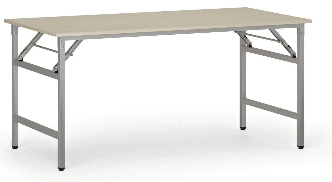 Praktický a flexibilní konferenční stůl s rozměry 160x80 cm je ideální volbou pro různé firemní i vzdělávací prostory. Díky své stabilní a pevné konstrukci je snadno přemístitelný, což ocení zejména při častých změnách uspořádání místnosti. Deska stolu je vyrobena z odolné laminované dřevotřísky o tloušťce 18 mm s odolnou ABS hranou, která zajišťuje dlouhou životnost. Rám tvoří pevná kovová konstrukce s praktickým mechanizmem pro snadné sklopení nohou, což usnadňuje skladování a přepravu. Povrch kovových částí je opatřen práškovým vypalovacím lakem v moderním šedostříbrném odstínu, který odolává poškrábání a povětrnostním vlivům. Výška stolu je 75 cm, což je ideální pro pohodlné sezení při jednání či prezentacích. Tento produkt se dodává v demontovaném stavu, což zajišťuje jednoduchou montáž a flexibilitu při jeho využití. Díky svým vlastnostem je stůl vhodný nejen na konference nebo školení, ale také do různých výstavních a prezentačních prostor, kde je důležitá rychlá manipulace a vysoká funkčnost.