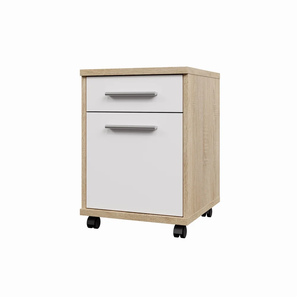 Praktický kontejner GIANNI NEJBY v provedení dub sonoma/bílá je ideálním doplňkem každé kanceláře, který přináší pořádek a reprezentativní vzhled. Jeho rozměry 38,2 cm na šířku, 55,9 cm výšku a 41,4 cm hloubku umožňují snadné umístění pod stůl či vedle něj.
