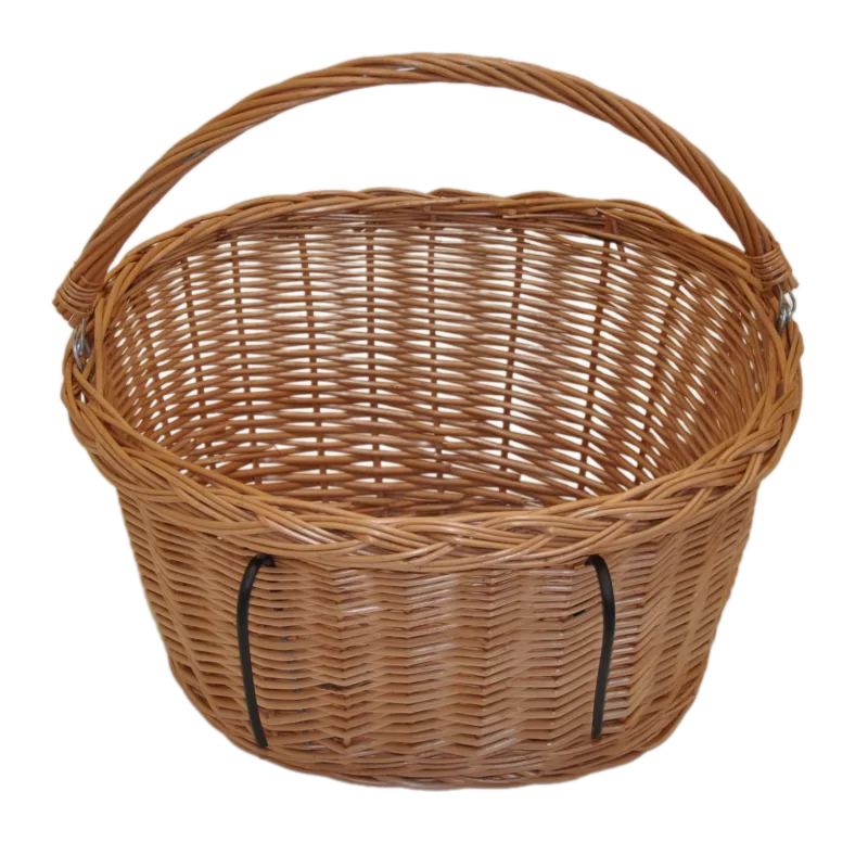 Košík na kolo vyrobený z vrbového proutí přináší přírodní vzhled a praktické využití pro každodenní vyjížďky. Slouží k snadnému zavěšení na řidítka a k upevnění na kolo jsou určeny dva silné ocelové dráty, které jsou již pevně zapleteny ve výpletu.