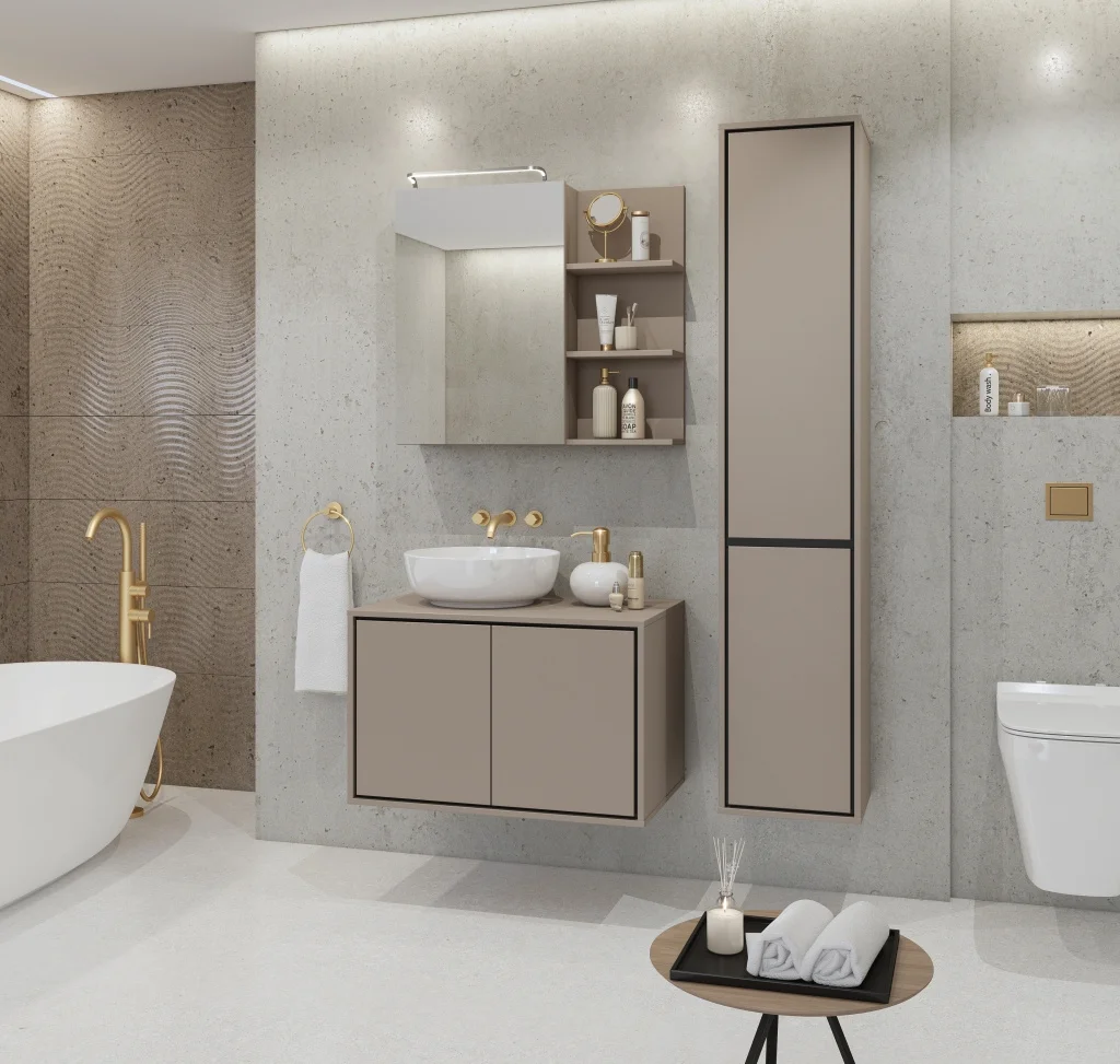 Barevné provedení: korpus Congo-černá, dvířka Congo. Materiály: laminovaný korpus 15 mm a MDF dvířka 16 mm. Sestava se dodává bez umyvadla a bez osvětlení a je dodávána v demontu. Tento modulárně řešený systém umožňuje snadnou kombinaci s dalšími díly řady a flexibilní uspořádání prostoru podle vašich potřeb. Díky nadčasovému designu se hodí do různých stylů koupelen a pořídíte ji s minimální údržbou.