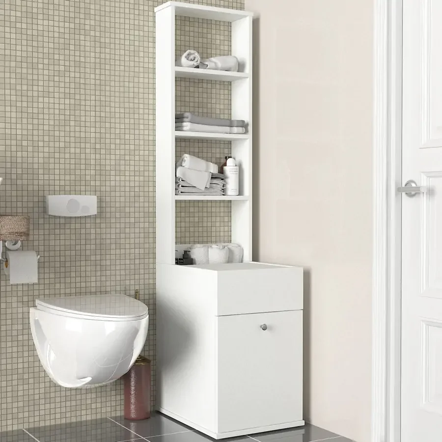 Jednoduchá a praktická koupelnová skříňka Linden v bílé barvě je skvělým pomocníkem pro organizaci prostoru. V horní části najdete tři otevřené police, které usnadní rychlou dostupnost každodenních drobností.