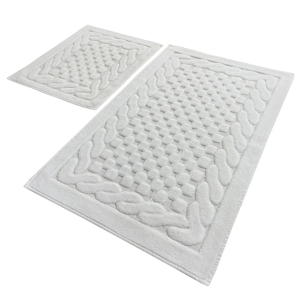 Předložky jsou vyrobeny ze 100% bavlny s vysokým vlasem 25 mm, který poskytuje jemnost a měkký krok pod nohama. Díky antibakteriálním vlastnostem zůstává prostředí čisté a bezpečné. Protiskluzová spodní část zajišťuje stabilitu a pomáhá předcházet nehodám. Každý kus je pečlivě ručně zpracován pro dlouhou výdrž. Barva Ecru dodává koupelně nadčasovou eleganci a snadno se hodí ke stávajícímu dekoru. Technické detaily: materiál 100% bavlna, výška vlasu 25 mm, hmotnost 1600 g/m², praní na 30 °C, rozměry 50 x 60 cm a 60 x 100 cm (každý kus).