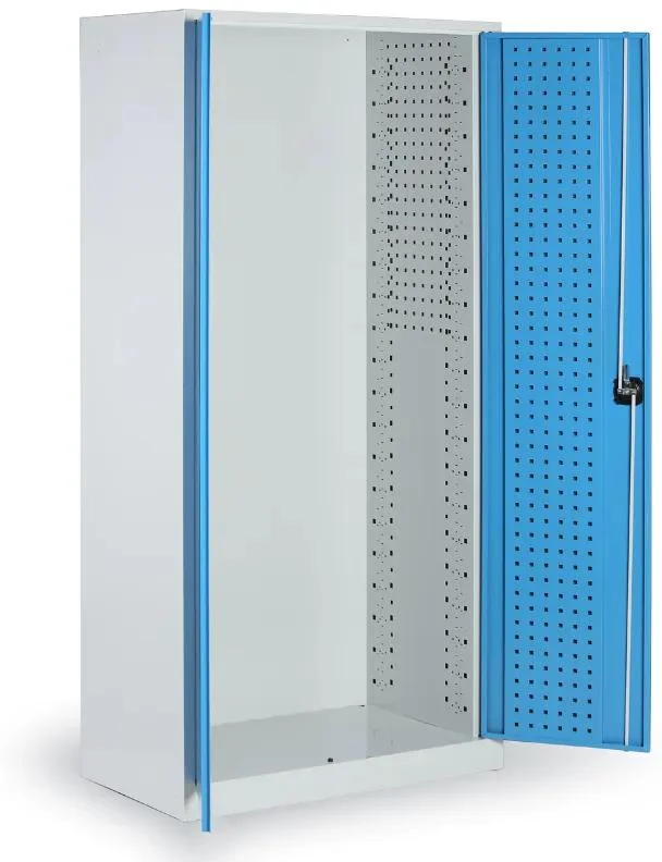 Robustní dílenská skříň odolná vůči nárazům a každodennímu používání, vyrobená z kvalitního ocelového plechu. Její stabilní svařená konstrukce zajišťuje pevnost a dlouhou životnost, zatímco uzamykatelné dveře chrání vaše nářadí před nepovolanými osobami. Povrchová úprava v šedé a modré barvě nejenže zvyšuje odolnost vůči oděru, ale také zvýrazňuje profesionální vzhled. Tento úložný systém je ideální pro každou dílnu nebo sklad, kde je důležitá bezpečnost a přehlednost uloženého nářadí. Skříň je navržena tak, aby poskytla optimální využití prostoru při zachování jednoduché manipulace a dlouhodobé spolehlivosti.