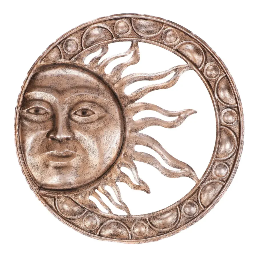 Ozdobná kovová dekorace FH2256 kombinuje teplé měděné a studené stříbrné odstíny a zobrazuje Slunce s obličejem, umístěné na obvodu kruhu. Slunce s tváří dodává motivu osobní šarm a zajímavou asymetrii, která se stane výrazným prvkem vašeho prostoru. Tento kus je vhodný pro interiéry i venkovní zdi a díky pevné povrchové úpravě odolá i venkovnímu prostředí. Snadná instalace a univerzální barevné ladění pak umožní snadno sladit dekoraci s vaším stylem. Perfektně se hodí do moderních i rustikálních interiérů, kde vytváří příjemnou atmosféru a originální bod zájmu.