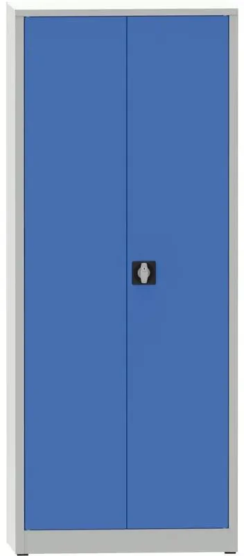 Dveře jsou zabezpečené tříbodovým rozvorovým zámkem s dvěma klíči, což zvyšuje bezpečnost uložených nástrojů a materiálu. Povrch je opatřen odolnou práškovou lakovou vrstvou v šedé barvě RAL 7035, přičemž dveře mají kombinaci šedé a modré RAL 5012, což přispívá k modernímu vzhledu a snadné údržbě. Ideální volba pro organizaci a bezpečné uskladnění nářadí v dílně nebo skladu.