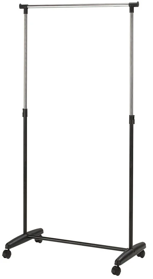 Praktický kovový věšák na oděvy s pojízdnou konstrukcí pro snadné přesouvání mezi místnostmi. Díky kolečkům usnadňuje manipulaci a šetří čas při každodenním oblékání v předsíni i ložnici.