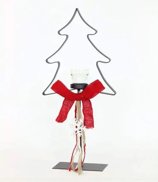 Kovový svícen AN752675 je stylovým doplňkem pro nadcházející svátky, který dodá vašemu interiéru jedinečnou atmosféru. Na spodní části visí ozdobná mašle s hvězdičkou, kterou najdete pod špicí svícnu.