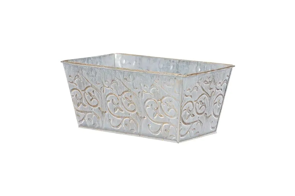 Kovový truhlík na květiny potěší jako originální dárek a zároveň oživí interiér svou netradiční dekorací. Povrch zdobí propracované ornamenty, které dodávají šarm a eleganci. Vintage vzhled je záměrný – drobné trhlinky a patina nejsou vadou, ale součástí designu.