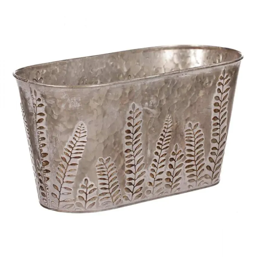 Elegantní kovový truhlík OK6359 CRM s jemným dekorem kapradí dodá interiéru i kryté terase nadčasový šarm. Jeho nadčasový design podtrhne luxusní styl prostoru a zároveň zůstává praktický. Truhlík je vyroben z odolného kovu a nabízí stabilní konstrukci, která dobře odolává každodennímu používání. Vhodný je pro interiér a kryté terasy, avšak není určen pro exteriér. Pokud vám dojdě místo na parapetu, doporučujeme podívat se na naši nabídku stojanů na květiny, které využijete pro efektivní zobrazení vašich rostlin. Díky odolnému materiálu a jednoduché údržbě bude truhlík dlouho sloužit a zůstane esteticky příjemný i po letech.