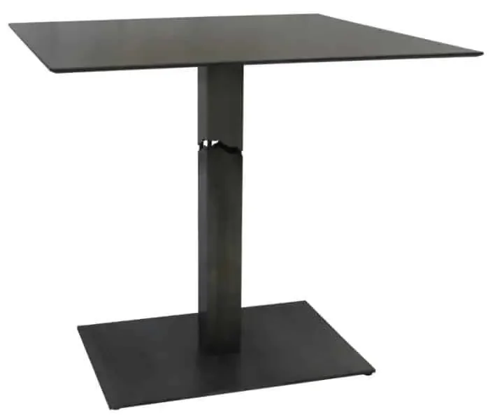 Centrální litinová stolová podnož s obdélníkovou základnou poskytuje stabilní oporu pro stolové desky v náročných interiérech. Povrch je černý podle barvy RAL 9005. Průřez trubky činí 80x80 mm.