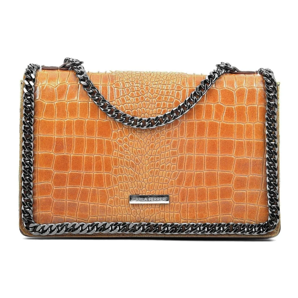 Elegantní a stylová kožená kabelka od renomované italské značky Carla Ferreri je ideálním doplňkem každého outfitu. Její originální povrchová textura a výrazné řetězové lemování dodávají na jedinečnosti a moderním vzhledu.